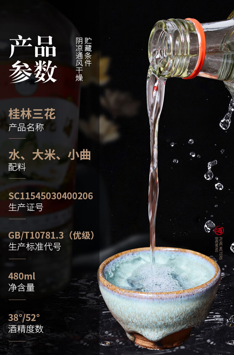 【广西馆】桂林三花酒经典480ml 低度白酒整箱 光瓶装米香型白酒 腌肉泡酒炒菜白酒广西桂林特产 【低度38】1瓶