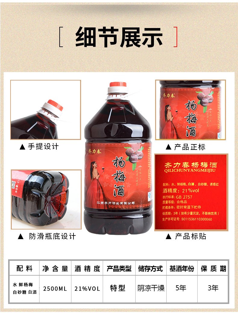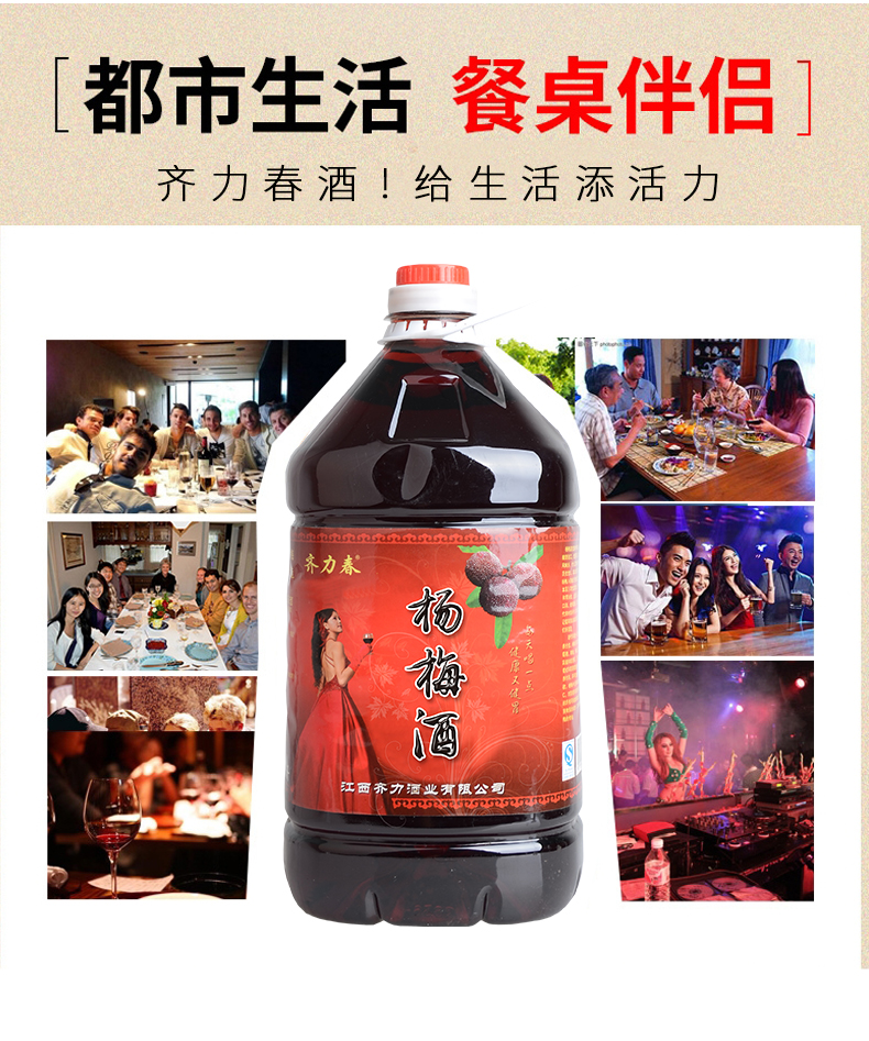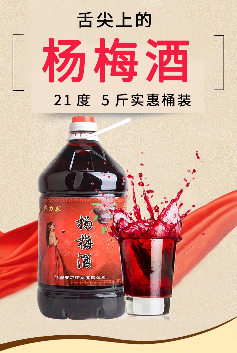 齐力春杨梅酒5斤桶装低度酒配制酒果酒 21度5斤桶装